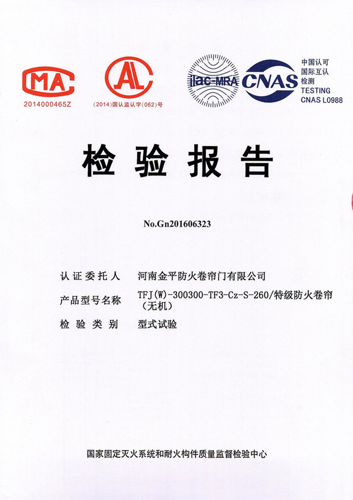 特(tè)級防火(huǒ)卷簾(無機)檢驗(yàn)報告