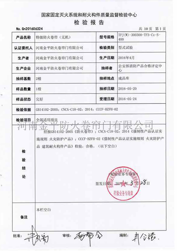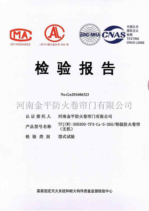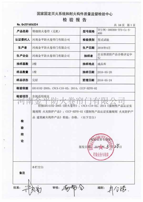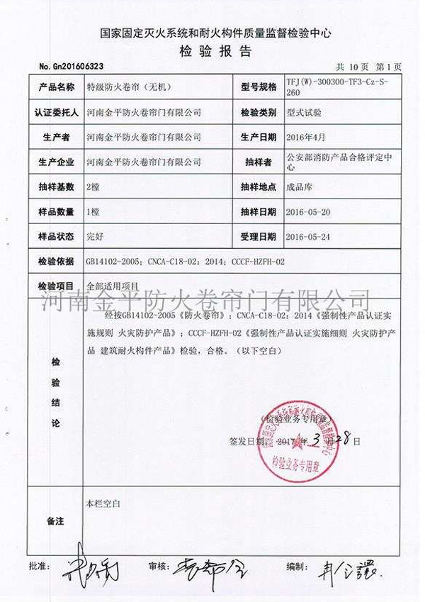 特級防火卷(juàn)簾(無機)檢(jiǎn)驗報告